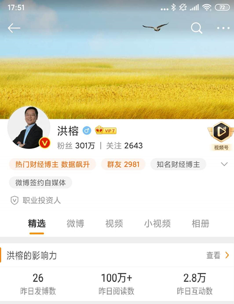 也因此从2011年8月18日起,洪榕开始在微博上发表了自己的第一条财经日记。