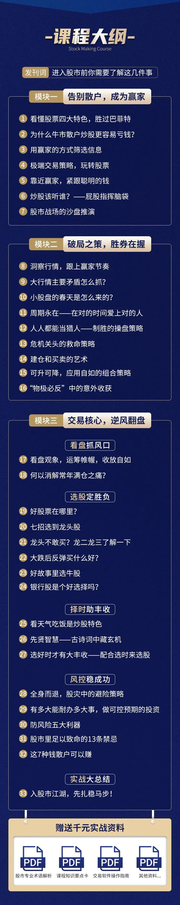 所以在课程中他会一步步带你提升投资思维,掌握股市实操技巧: