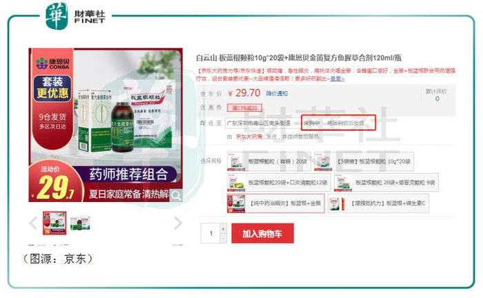 线上京东大药房、阿里大药房、广药白云山官方旗舰店复方板蓝根都也已经卖断货。京东大药房自营的白云山复方板蓝根颗粒至今仍显示为“采购中”,商品到货后平台才可以发货。