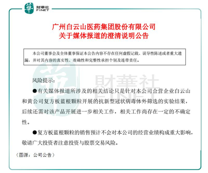 风头浪尖上的白云山终于在昨日发布澄清公告,澄清两点: