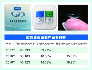 此外,爱博医疗视光类产品(角膜塑形镜、其他视光配套产品)2019年毛利率水平为75.97%;欧普康视角膜塑形镜产品(包括经销和直销)2017年、2018年毛利率为88.33%、90.46%。