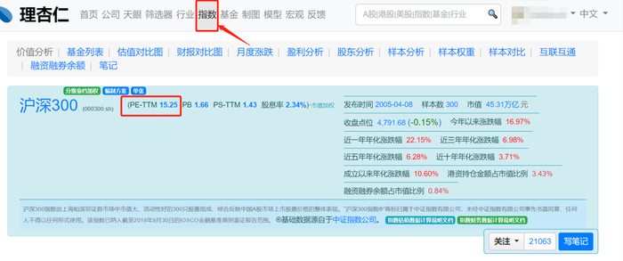 市盈率可以在理杏仁官网、中证指数公司官网、且慢官网、集思录等网站上检索到。具体如何查呢?以理杏仁网为例,小巴给大家演示一下三个步骤: