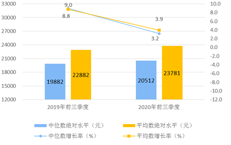 图12020年前三季度居民人均可支配收入平均数与中位数