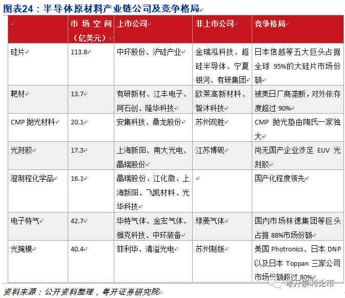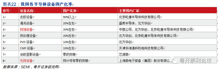(2)设备领域,龙头公司包括北方华创、华峰测控、中微公司。