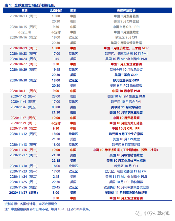 全球宏观日历:关注中国Q3经济数据