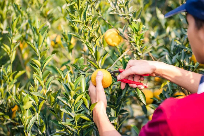 采摘时,参考每颗柑树前一年生长最好的时间段来进行。