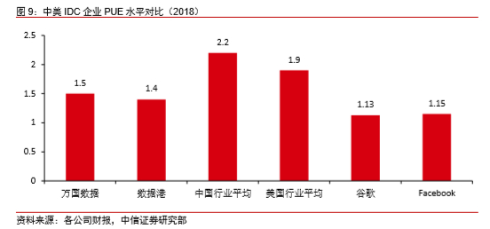 除了行业需求、供给、竞争格局之外,中信证券表示,市场利率的下行,企业自身运营效率(PUE指标)的提升等,亦有望推动国内IDC行业及主要企业盈利能力持续改善。