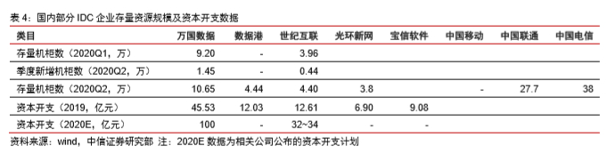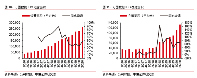 中信证券表示,作为目前国内最大的第三方IDC厂商,2020Q2万国数据实现收入13.4亿元, 其中99%为IDC收入,存量资源规模、收入体量远超国内其他第三方IDC企业。