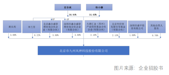 根据九州风神最新披露的招股书来看,在本次发行前,夏春秋和韩小娜夫妇合计股份占发行前公司总股本的 77.82%,而算上其一致行动人宁世爱(夏春秋母亲)、韩天雨(韩小娜父亲)所持有的公司股份,占到了发行前公司总股份的78.26%。