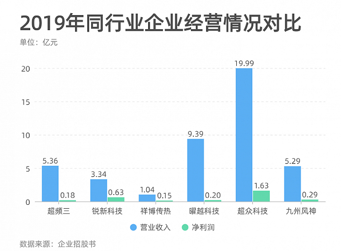 根据六家公司2019年营业情况来看,九州风神的营收排名第四,与第三名超频三(300647.SZ)差距较小;净利润排名第三。如以扣非之后的净利润6846.97万来看,九州风神实际盈利能力可圈可点。