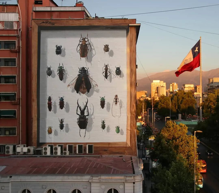 无论是昆虫学家还是植物学家,很多这方面的专家都会为自己研究的生物进行画图;Mantra也不例外,只不过他是将画布转移到了楼体的墙面上。