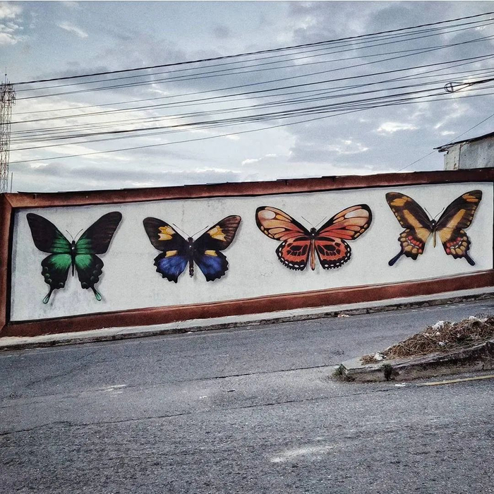 但Mantra就做到了,看看他手下这些巨大的蝴蝶涂鸦,这不就是一边做着艺术家做的事情一边又同时进行着昆虫学家的研究嘛!
