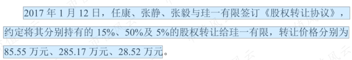 2017年1月,公司(当时名称为“成都珪一食品开发股份有限公司”,简称“珪一有限”)以合计399万元的价格从公司股东任康、张静、张毅处购买了川麻人家70%的股权。