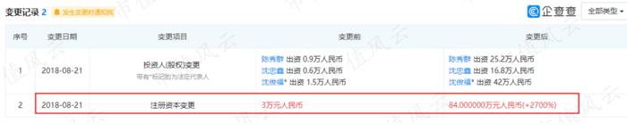 汉源伊鑫在2018年8月21日发生注册资本变更,从3万元变更至84万元。