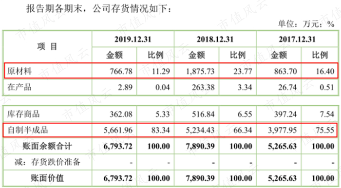 截至2018年末,公司原材料和自制半成品的账面价值均较2017年同期大幅增长。截至2019年末,公司自制半成品账面价值为5662万元,仍高于去年同期的5234万元。