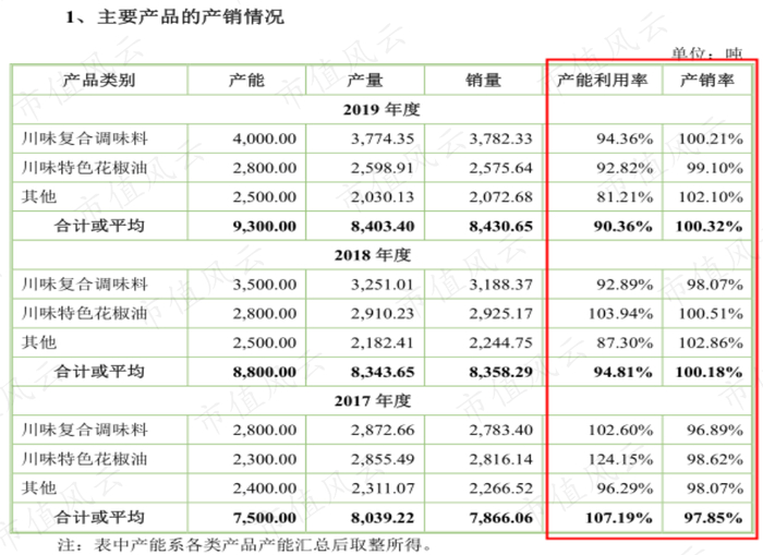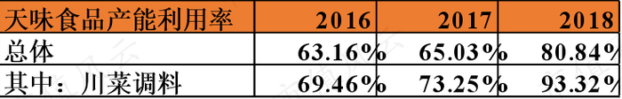 对比行业龙头之一的天味食品,虽然其总体产能利用率低于公司,但在2016-2018年逐年上升。