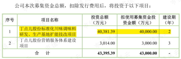 公司拟将募资资金中的4亿元用于川味调味料研发、生产基地的扩能技改项目,另将3000万元用于建设营销服务体系。