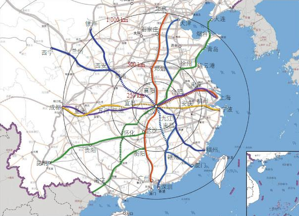 武汉市米字型高铁网络布局示意图