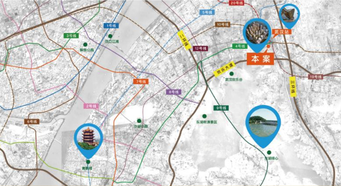 ——交通配套。立足武汉高铁站,“半小时城际体系”覆盖1+8城市圈,3小时直达华中四省,“5小时城市群”覆盖国内主要城市。地铁方面周边规划有5条地铁线路,其中4号线已经开通,途经汉阳、武昌和洪山,衔接武昌火车站和武汉火车站两大铁路枢纽站,并与1、2号线相连,实现了高铁、城铁、地铁“三网”间的快速无缝换乘;未来片区还将新增5号线、10号线、19号线和20号线,快速链接武汉三镇。(注:交通规划以官方输出口径为准。)