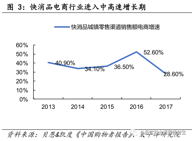 (1)发展阶段:发展阶段上,休闲零食电商已建立起可复制的商业模式,行业已从导入步入成长。行业增速已由高速迈入中高速,优势企业差距不大但差距正逐渐拉开,如果将成长期分为春秋和战国两个时期,则现阶段正从春秋步入战国,大概处于春秋之末战国之初。