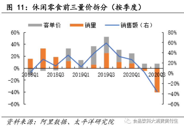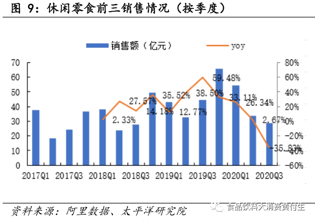 休闲零食线上数据20Q3跟踪:行业增速有所放缓,龙头受基数影响大【太平洋证券 黄付生、蔡雪昱团队】