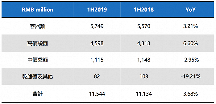 康师傅的老对手统一中国2019年半年财报也显示,其方便面业务增长也由汤达人等中高端产品带动,汤达人的销量上半年保持了双位数增长。
