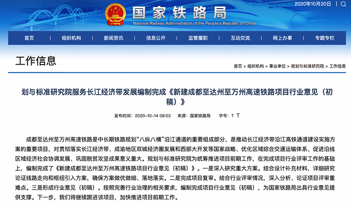 今年3月,交通运输部网站(重庆交通子站)发布的《新建铁路成都至达州至万州铁路项目环境影响评价第一次信息公示》显示,成南达万线路,西起成都市,向东经四川省资阳市、遂宁市、南充市、达州市,终至重庆市万州区。