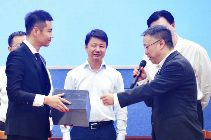 樊国宾、徐子崴代表双方签订了音乐文化产业构建战略合作协议并互赠音乐非遗礼物。