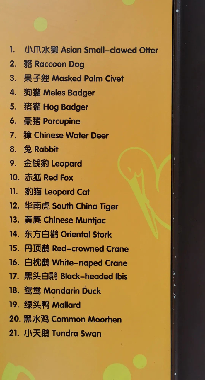 不过,普通市民想要全部认对这里的动物也不容易,先来看看名录吧↓