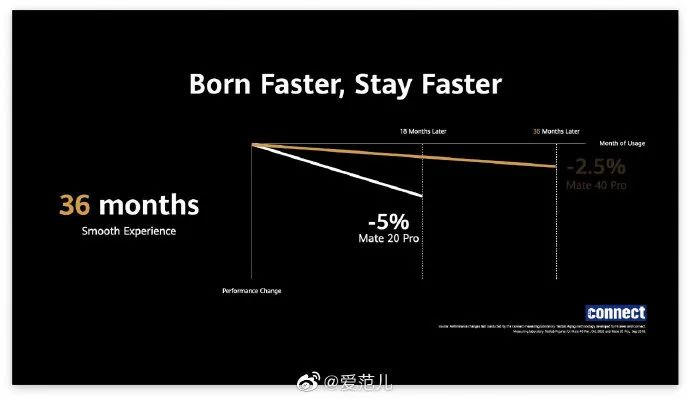 余承东表示,现在的华为手机已经可以实现长达 36 个月的流畅使用:‘天生更快,一生更快。’