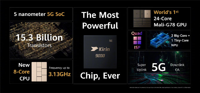 此次,华为Mate40系列搭载全新5纳米5G SoC麒麟9000旗舰芯片。
