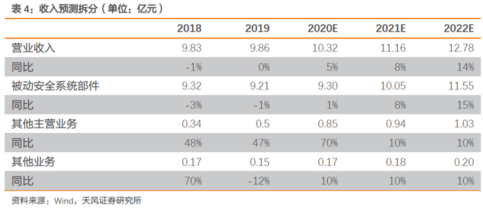 预计随着乘用车行业复苏,安全气囊使用量逐步增长,公司的销量将回升,规模效应加上治理改善,带动公司毛利率提升,费用率降低。