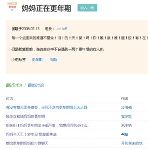 一个名为“妈妈正在更年期”的豆瓣小组有近3000名成员