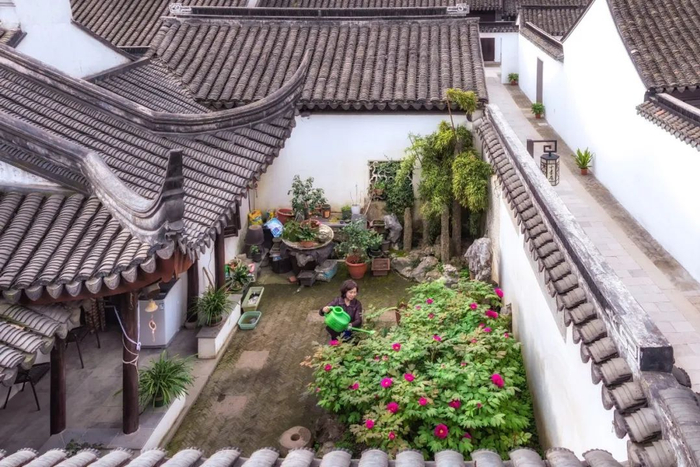 ▲ 从上至下:图1:无锡历史文化街区小娄巷的唯一住户,花为150岁的清代牡丹,摄影/微博@也就那样;图2:荡口古镇着汉服合影的情侣,摄影/归祖玲;图3:锡剧《珍珠塔》剧照。摄影/沈生华