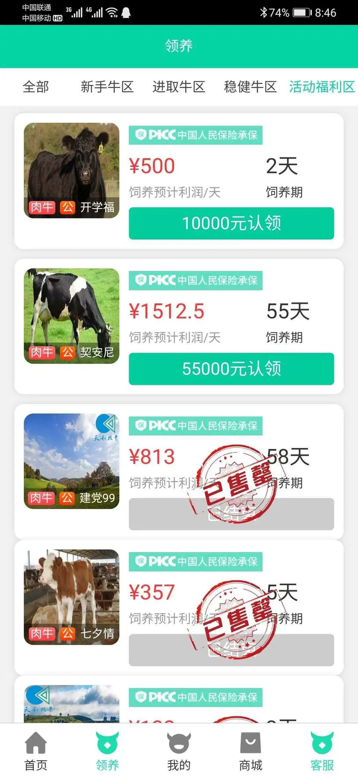 称被骗的不止一人。近日,澎湃新闻接到全国多地多名自称“云养牛”骗局受害者的投诉,他们称,在疫情期间出现了多个名称中有“牧业”的APP,打着“互联网+畜牧业”的名号,让用户在APP中在线领养回报率不同的“牛”获取收益。