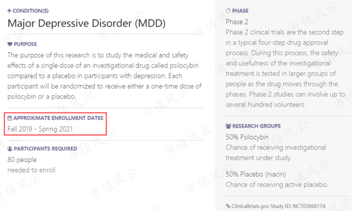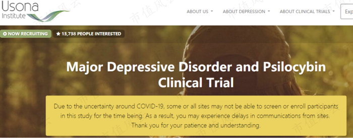 乌索纳研究所的官网显示,其裸盖菇素疗法的二期临床试验原计划在2019年秋季至2021年春季期间进行志愿者招募。