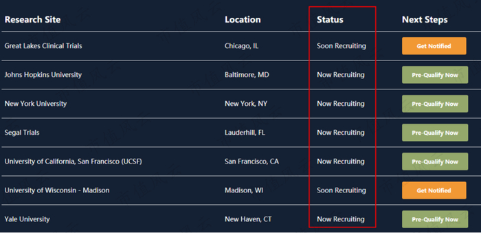 官网显示,该研究所位于美国的7家试验点中的5家目前仍在招募志愿者,另外2家显示即将开放。
