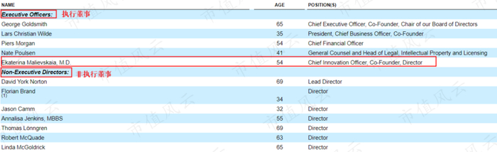 公司的核心管理层中,只有Ekaterina Malievskaia拥有医学博士学位。