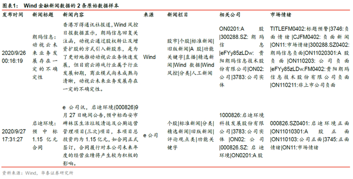 图表1为Wind金融新闻数据库中的2条原始数据样本。