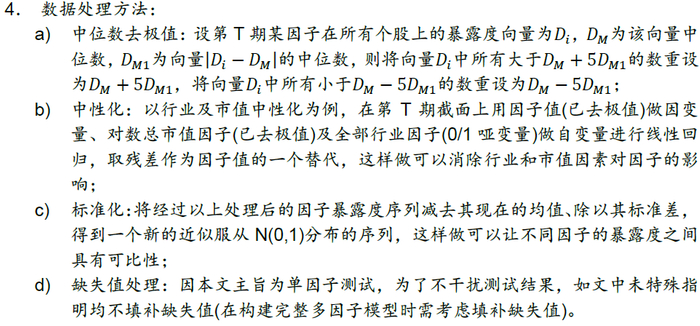 2. 先将因子暴露度向量进行一定预处理(下文中会指明处理方式),再计算处理后的T期因子暴露度向量和T+1期股票收益向量的Spearman秩相关系数,作为T期因子Rank IC值。