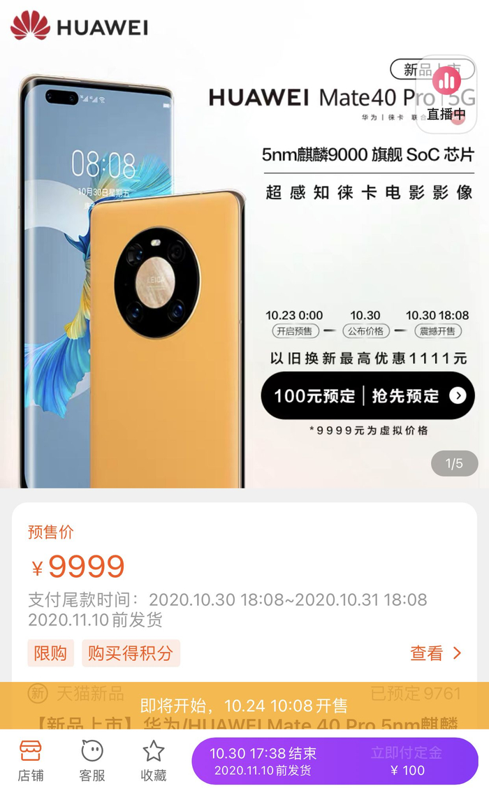 Mate40系列预售:天猫官旗涌入500万人 京东显示无货