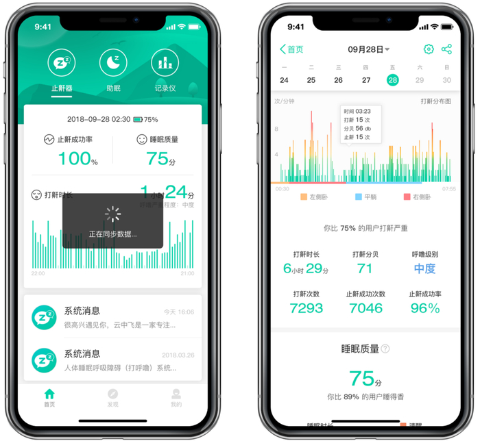 搭配专属的云中飞睡眠App,还可以自主调节止鼾干预强度等,提高使用舒适感。