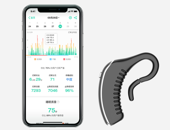 而这个止鼾耳机,承载了止鼾算法、声音识别技术和骨传导技术。
