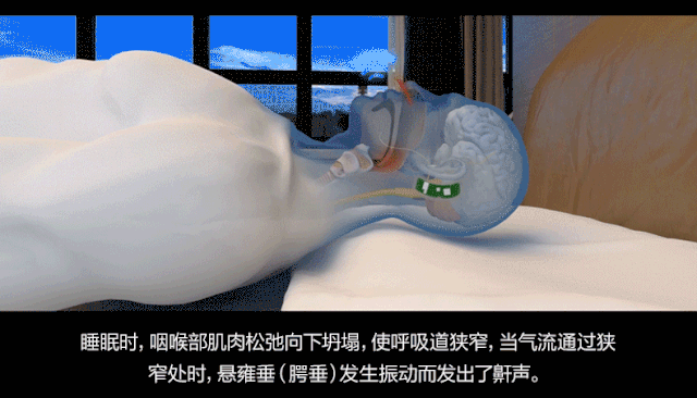 当呼吸气流通过狭窄呼吸道时,会引起涡流使悬雍垂(小舌头)发生振动,从而引发鼾声。