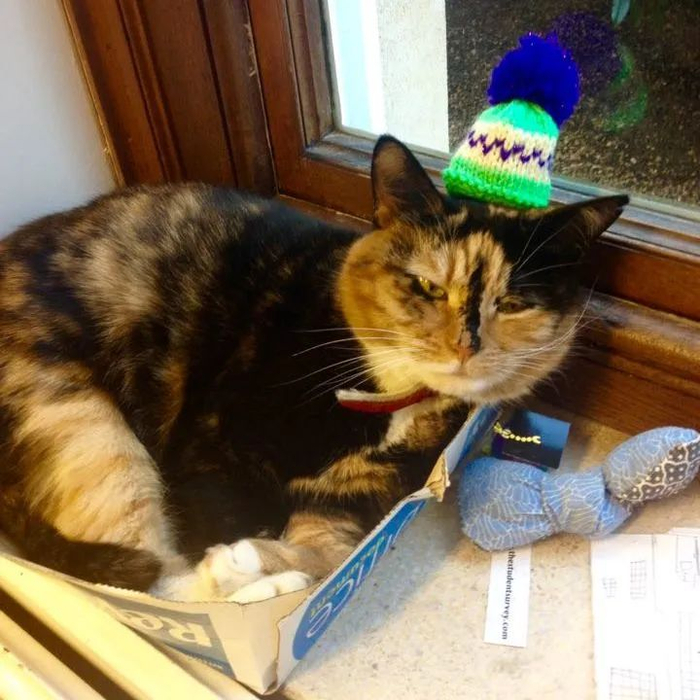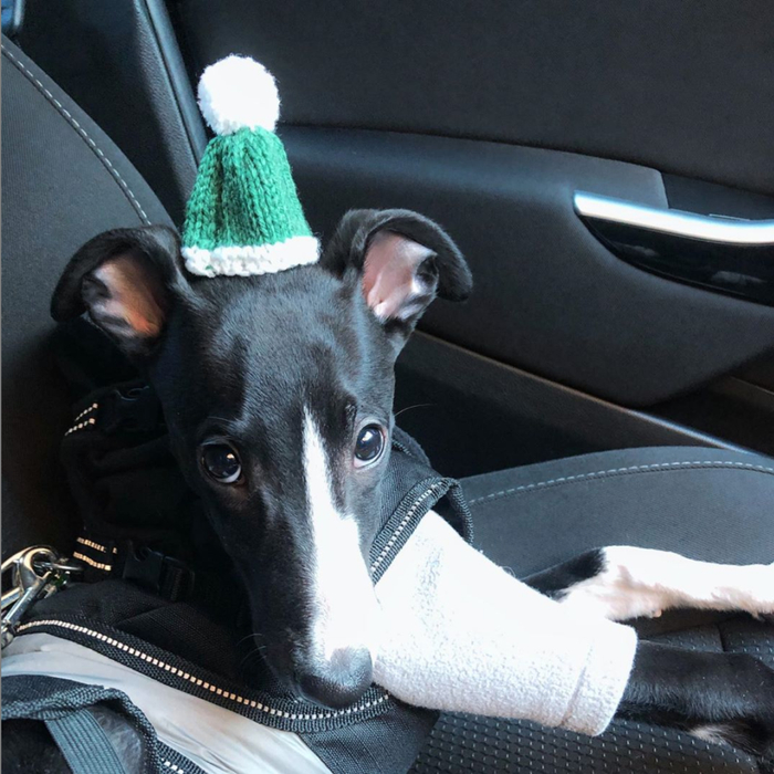 △ 人们还发掘了小帽子的新用途,比如给圣诞树、模型或爱宠当装饰,甚至还有司机把它当作车变速杆的保暖套。图片来源 | Instagram @merlinthewhippet、Twitter @ChristsAccess