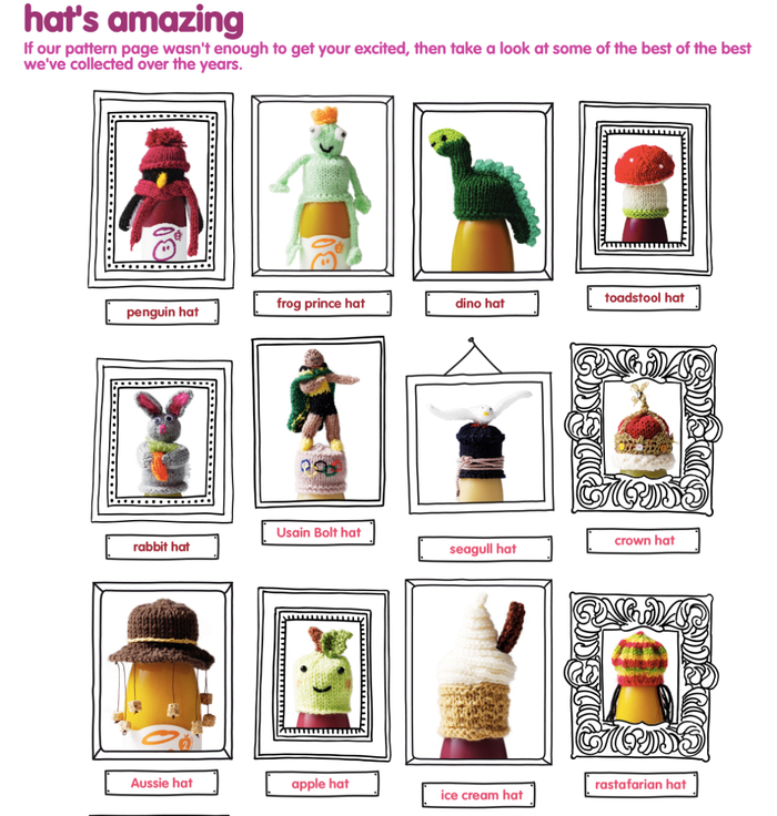 给果汁瓶戴上一顶小帽子——听起来有点傻。但假如它们出现在超市的冰箱货架上,和其他光秃秃的果汁瓶子放在一起,你会不会想走上去看看?