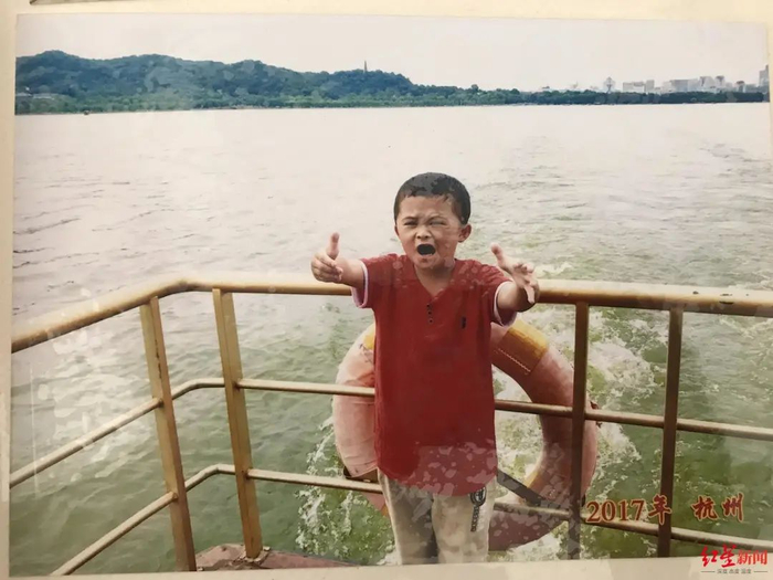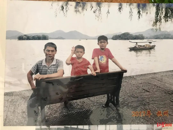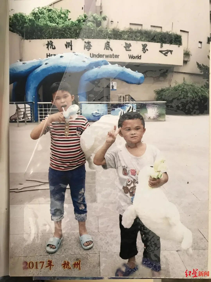 相册里的照片拍摄于2017年7月,杭州一家公益机构把范家发父子三人接到杭州“玩了十多天”。在一张拍摄于公益机构门前的照片里,工作人员的包围下,10岁的“小马云”范小勤和哥哥范小勇表情有些拘谨。
