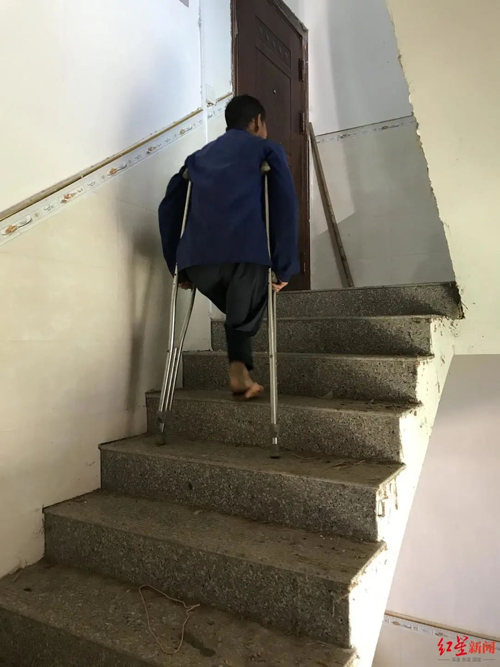 10月11日,接近傍晚,范家发才从山上拄着双拐下来。因为只有一条腿,把满满一背篓油茶籽背回家,范家发要比别人多花三倍的时间。二十岁那年,范家发在菜地里被毒蛇咬伤右腿,村医治疗耽误了时间,最终无奈截肢。范家发的命运从此改变。