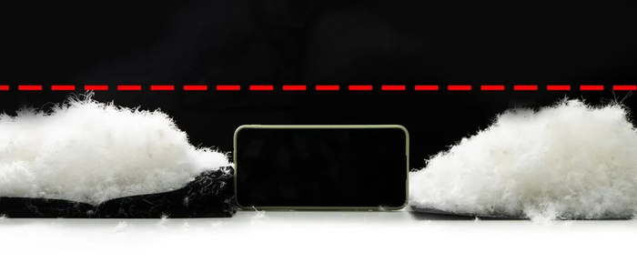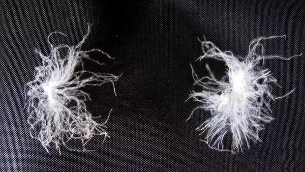 左:稀疏短小的鸭绒 右:饱满蓬松的鹅绒