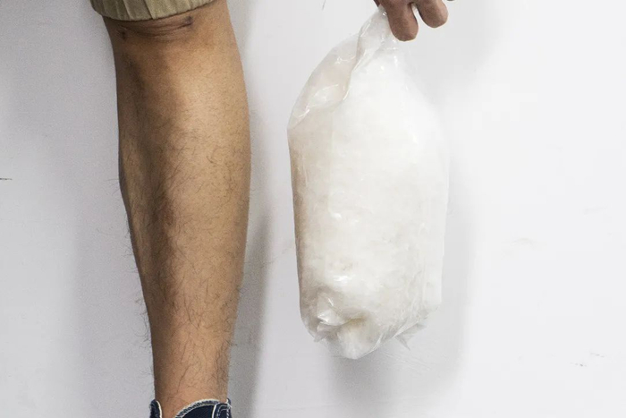 收集进袋子里,豁!比摄影小哥一裤腿还粗!